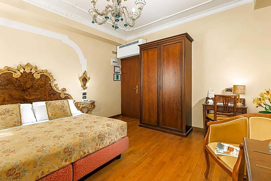 This spacious Venetian-style room offers a flat-screen with satellite channels, air conditioning and Murano chandeliers. It also includes an electric kettle, mini-bar, and free WiFi.